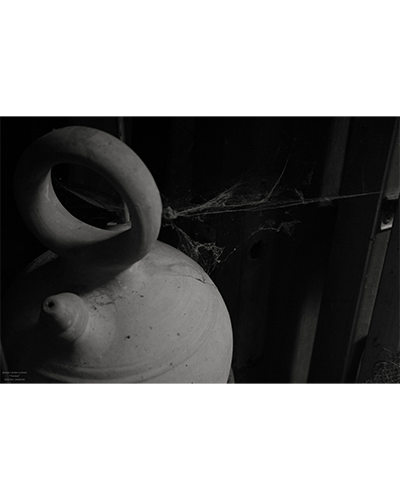 Realicé la serie Interior, invierno en el mes de marzo de 2023, en el jardín y el cobertizo de mi casa. No iba en pos de una fotografía espiritual, aunque tal vez acabé en ella al perseguir sobre todo el silencio y cierta eternidad del frío. Quizá también buscaba la desolación que marcan el tiempo y el abandono.